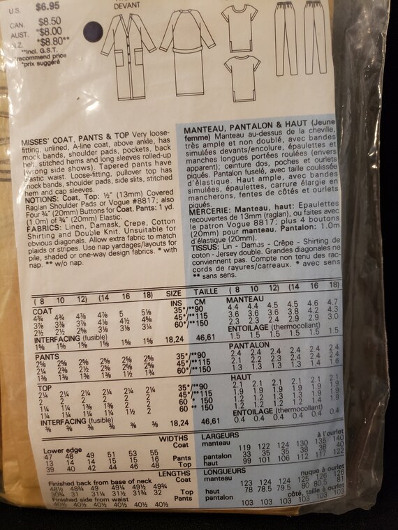 Vogue 9824 Sewing Pattern For 3 Piece Ensemble Includes Long Etsy